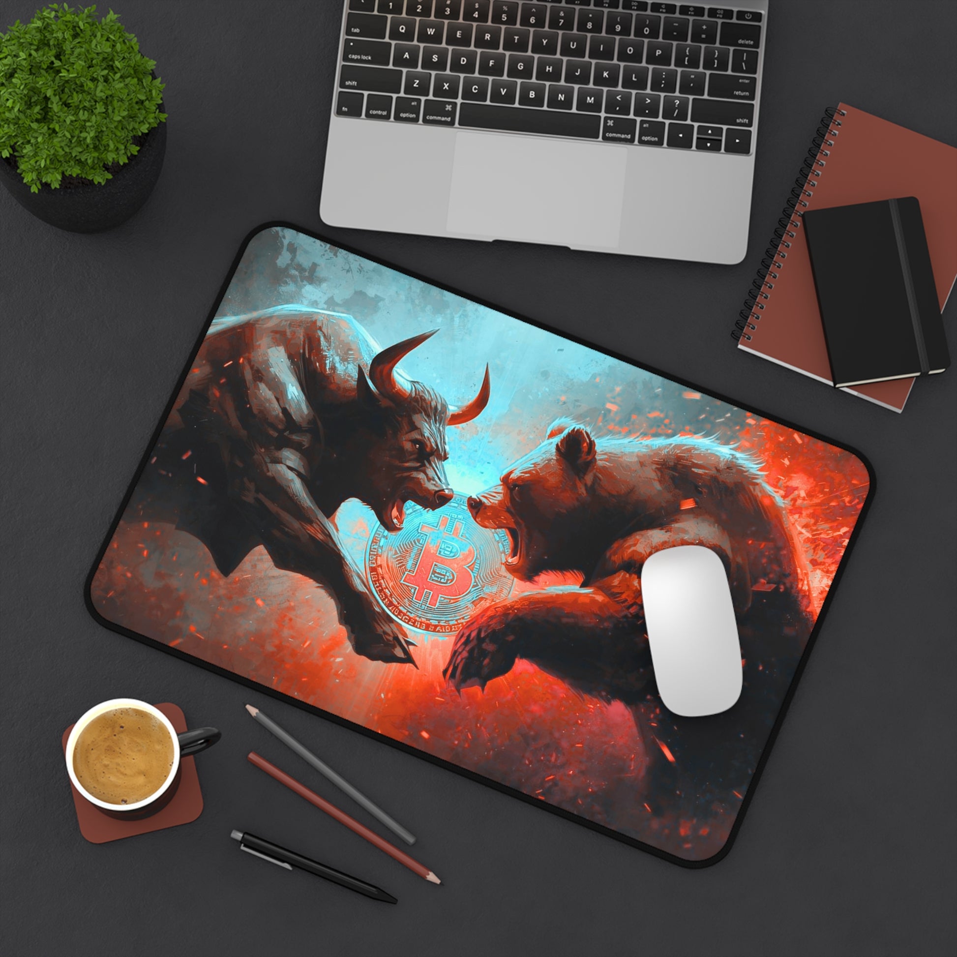 Crypto Bull vs Bear Desk Mat — Gaming Mousepad with Bitcoin Battle Artwork